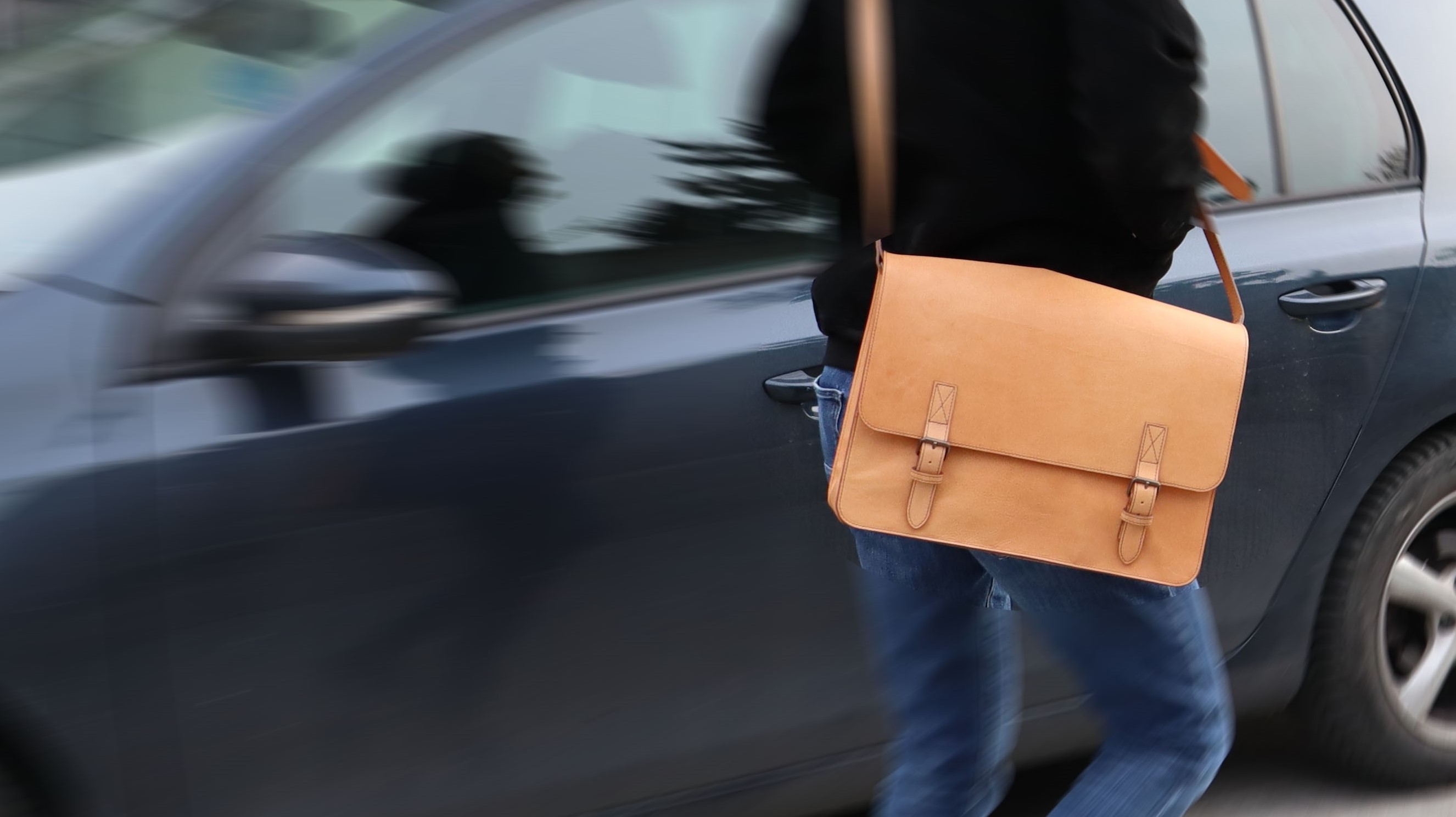 Laptop bag in genuine leather